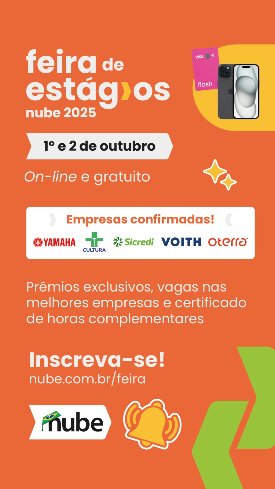 Vem aí a Feira de Estágios Nube 2025, o maior evento de estágios do país, que acontecerá nos dias 1 e 2 de outubro, de forma online e gratuita! Sua chance de se conectar com as melhores vagas, conteúdos exclusivos e sorteios imperdíveis. Não perca! #FeiraDeEstagiosNube #Estagio #Oportunidade
